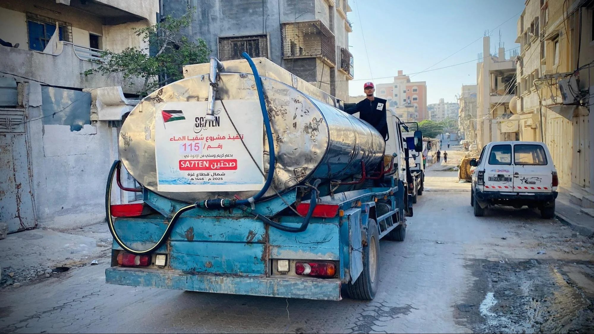 Our team has consistently delivered critical water supplies to communities in urgent need. In the first week of July our team dispatched water convoys carrying 21,000L of water. On July 2, 2025, we delivered 7000L of water to the Al-Nasser neighborhood following a direct community appeal. Although we aimed for two truckloads, the destruction of operational water stations allowed for only one to be delivered that day. Despite these immense challenges, we ensured this crucial resource reached those in need. Just two days later, on July 4th, we were able to conduct two more water distribution efforts in the Al-Nasser neighborhood and around Haider Abdel Shafi roundabout. These efforts, as always, were a direct response to urgent appeals, some ongoing since the previous day. We dispatched two trucks, each carrying a further 7000L of water. Our operations were meticulously coordinated with local teams, ensuring timely communication about our arrival for efficient distribution. People were informed that we would arrive between 1:00 PM and 2:00 PM, allowing them to prepare containers to receive the water, streamlining the process.