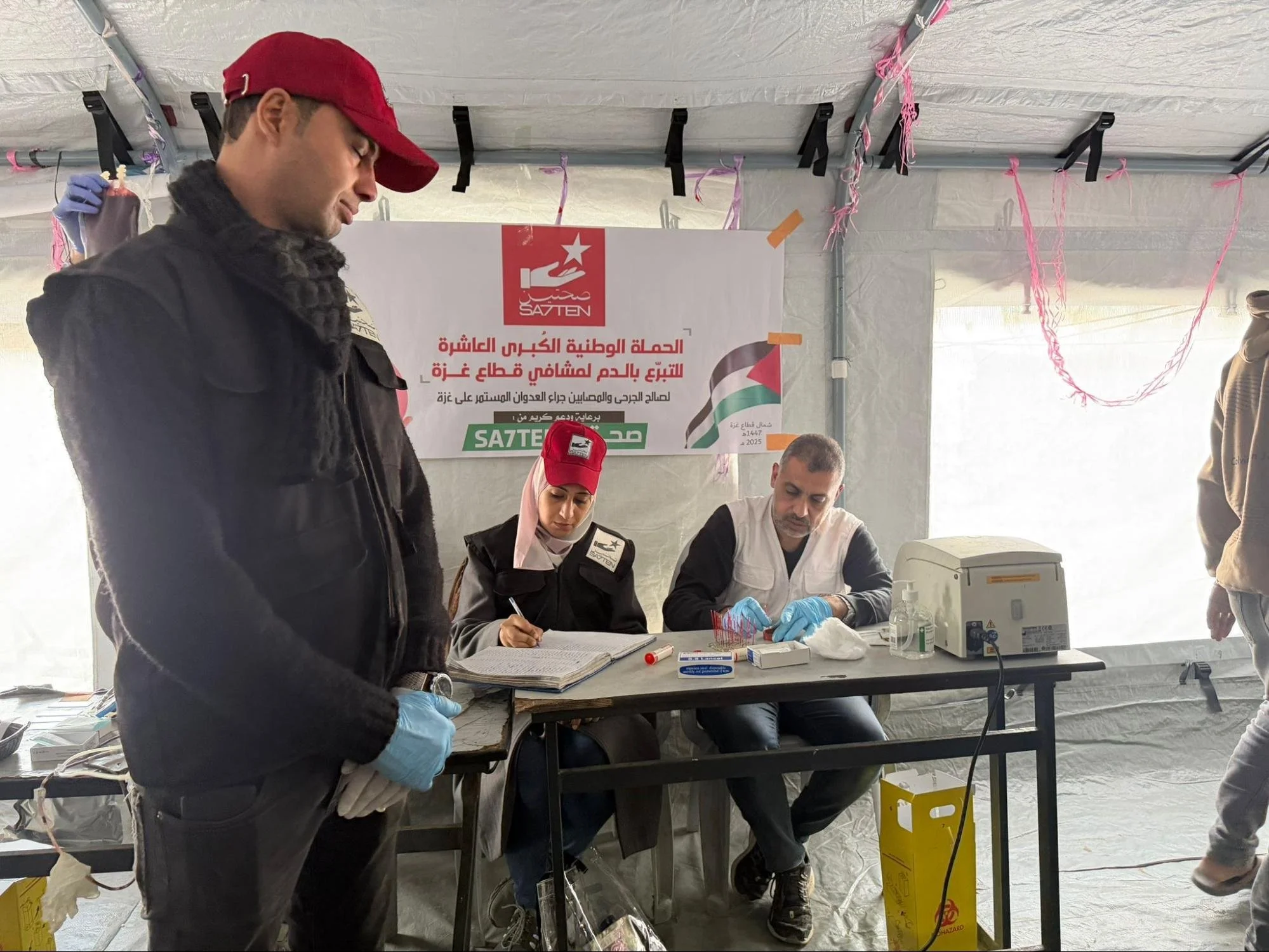 Volunteers moved from tent to tent, informing residents of the campaign directly. We supported the Gaza Blood Bank medical staff, welcomed donors with respect, and maintained their privacy throughout the donation process.